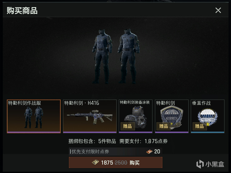 5.例如: 捆绑包价格为1875点券,如果玩家以1500点券的原价单独购买特勤利剑特种作战服,捆绑包价格将扣除特勤利剑特种作战服的 折扣价(1125点券),捆绑包剩余价格为750点券。