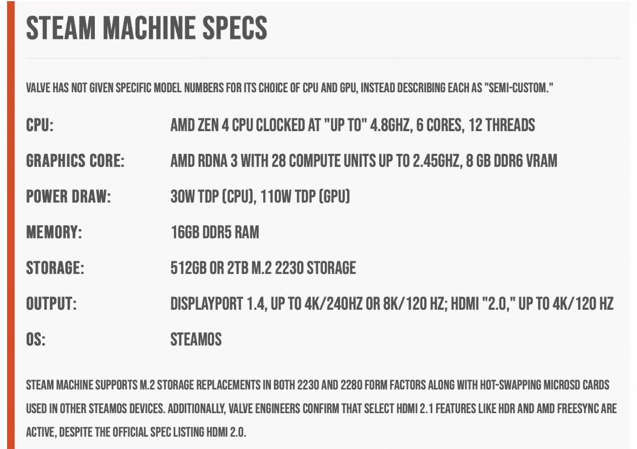 Valve于今日凌晨正式公布了主机级设备Steam Machine,知名技术媒体数毛社率先发布了上手体验报告。这款采用立方体设计的设备性能定位介于Xbox Series S与标准版PS5之间,在某些方面甚至更接近PS5水准。