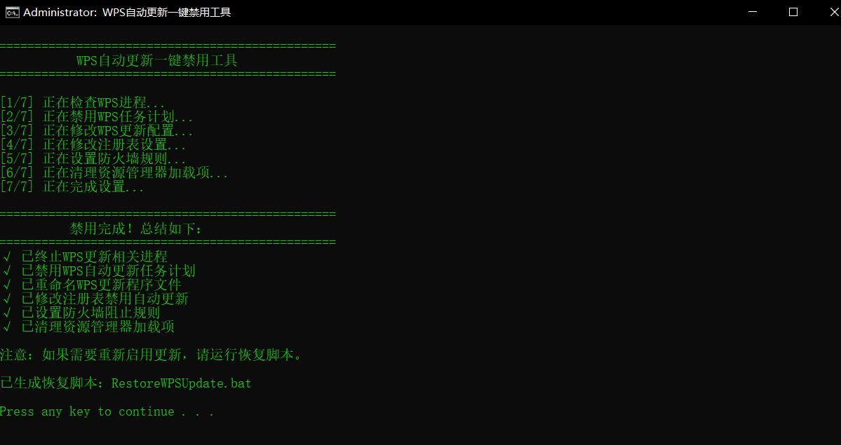 腳本會自動在同一目錄下生成 RestoreWPSUpdate.bat恢復腳本,當需要重新啓用更新時,以管理員身份運行即可。