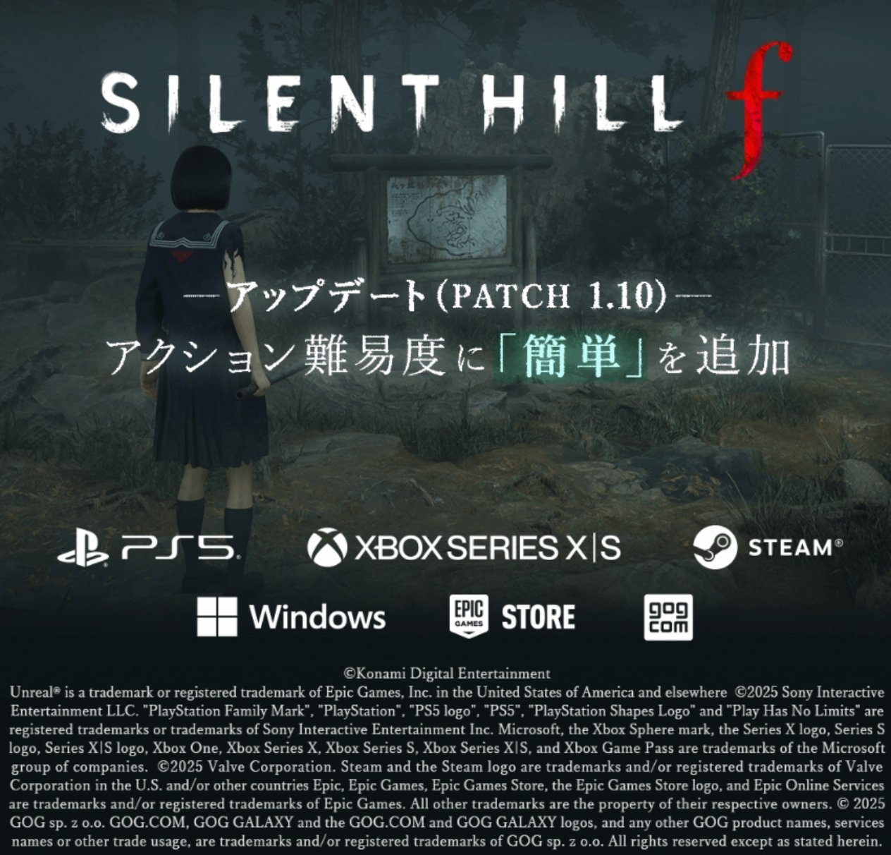 今日,科乐美为恐怖动作游戏《寂静岭f》发布了1.10版本更新。此次更新主要新增了更适合新玩家的“简单”难度选项,并为首周目后玩家提供了跳过部分章节的功能,旨在优化多周目体验。此前女主演员加藤小夏在多次直播中被狂虐,现在终于可以选简单难度了。