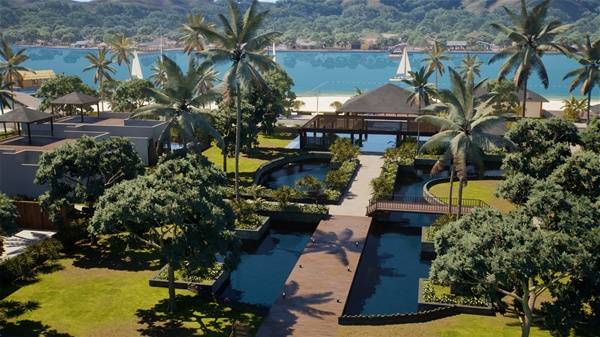 新增城镇天堂岛——岛屿风情、终日如夏、山青草绿、蓝天碧海。