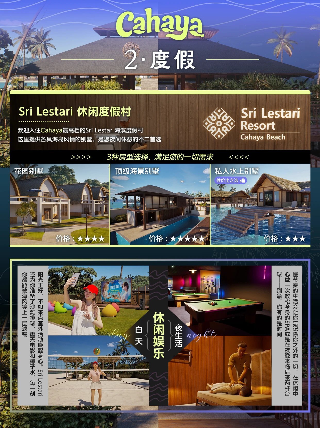 “Cahaya”确实是一场视觉盛宴:虚幻5引擎将海浪的波纹、棕榈叶的摇曳、度假村水疗中心的蒸汽渲染得纤毫毕现。玩家可以浮潜观赏珊瑚礁,遭遇突如其来的风暴毁掉庄稼,或是购买“自然灾害保险”对冲风险。
