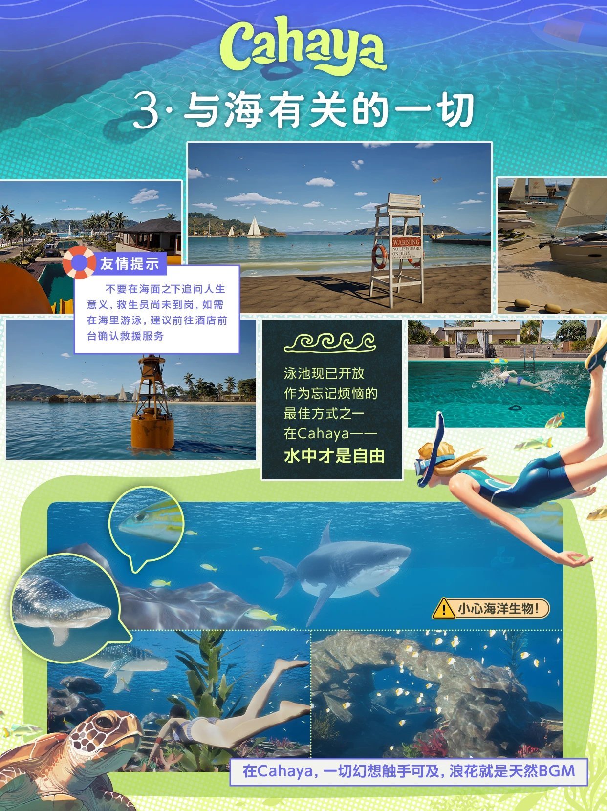 这些设计并非孤立的小游戏,而是与角色成长、世界观设定紧密交织。玩家能感受到岛屿的“呼吸”——潮汐涨落影响渔船航线,火山喷发威胁度假村运营,甚至鲨鱼袭击会改变NPC的命运轨迹。