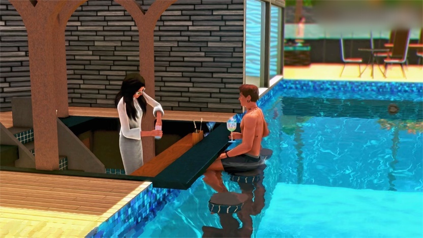 房建新增泳池吧台,“模拟小人”可以在泳池像酒保点饮料。