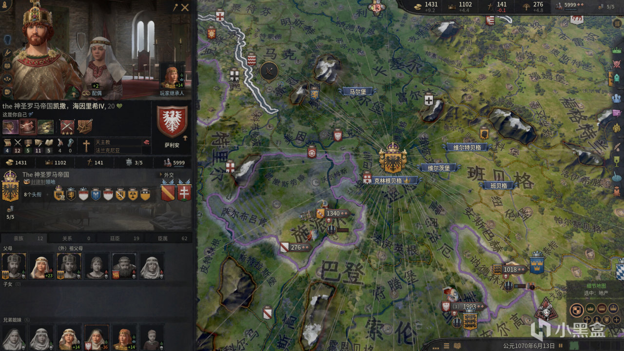 与大多数策略游戏不同,《十字军之王III》的核心并不是单纯的领土扩张和军事征服,而是通过一代又一代的传承,围绕着一个家族的兴衰起伏展开。在游戏里我们并不是在控制某个王国,而是扮演一个家族的领袖,从某个小小的领地起步,逐步扩张,攀登权力的巅峰。想要做到这一步,军事战争并不是最主要的手段,更多的反而是通过婚姻、阴谋、政治联盟等方式来实现,最终目的是保证家族的血脉延续,家族意志永存!