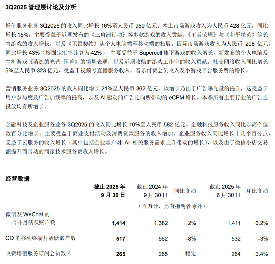 本土市场游戏收入428亿元,同比增长15%。主要受益于近期发布的《三角洲行动》等多款游戏的收入贡献,还有《王者荣耀》《和平精英》等长青游戏的收入增长,以及《无畏契约》PC端至移动端的拓展。