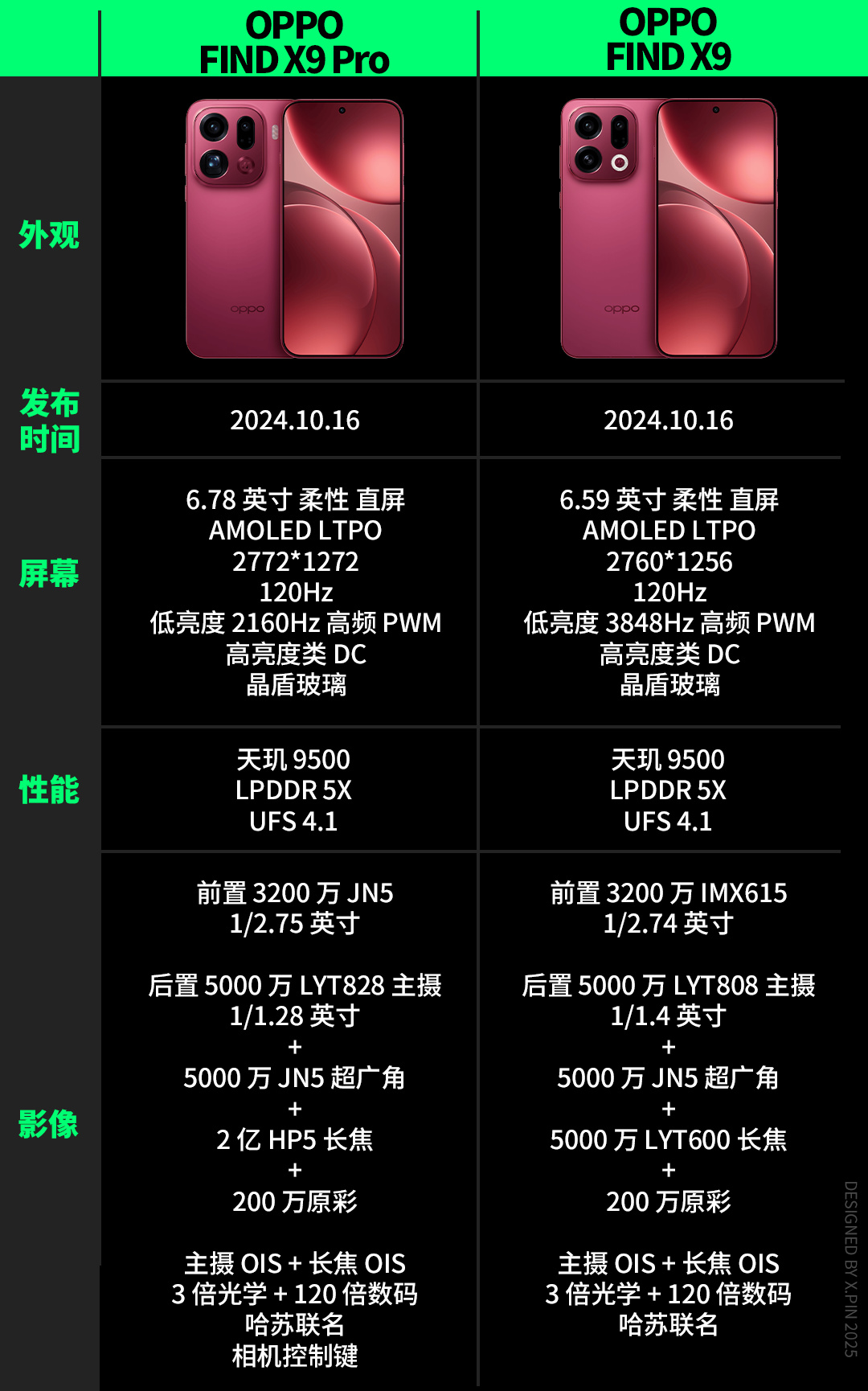 比如 OPPO 這邊,它前陣子剛推出了兩款旗艦 —— Find X9 和 X9 Pro,這次黑廠只給 Find X9 Pro 用上了一顆 2 億像素的潛望長焦,而 Find X9 只用上了一顆常規規格的長焦鏡頭。