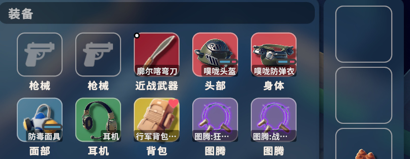 圖騰推薦狂戰3+戰士3,當然也可以選擇沒有副作用的狂戰2+戰士2。近戰武器備選項還有戰術鹹魚和大劍魚,這兩個裝上兩個和平星就是當前版本最暴力的近戰武器。追求極限速度可以換爪刀。