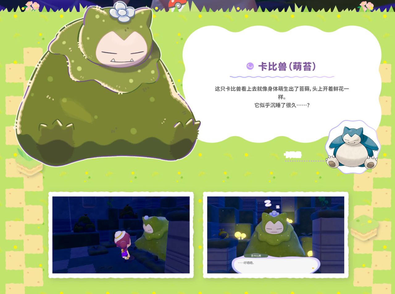 这只卡比兽看上去就像身体萌生出了苔藓,头上开着鲜花一样。