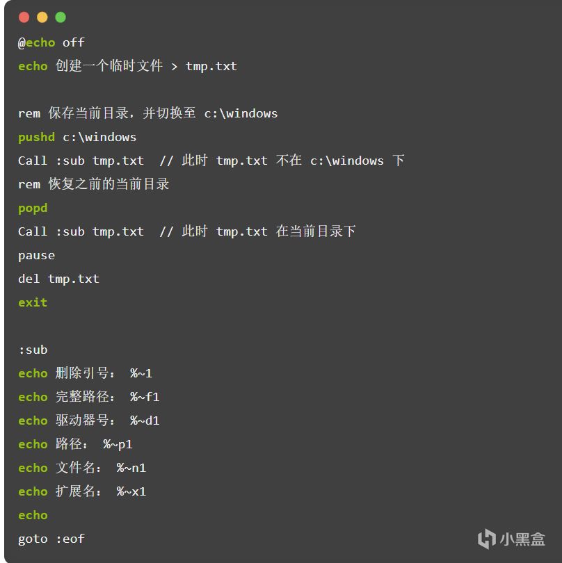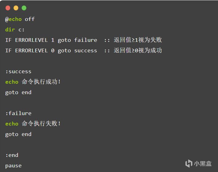 在批处理中允许以“ : XXX ”来构建一个标号,然后用 GOTO XXX 跳转到标号 : XXX 处,然后执行标号后的命令。