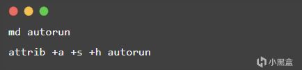 上面的命令将建立文件夹 autorun,然后将其设为存档、系统、隐藏属性