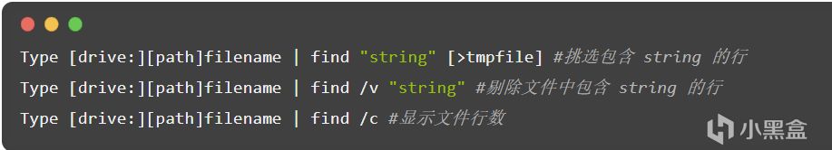 [drive:] [path] filename - 指定要搜索的文件。如果没有指定路径,FIND 将搜索键入的或者由另一命令产生的文字。