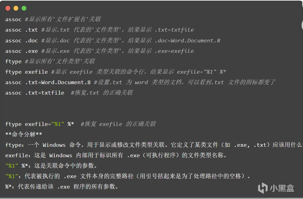 assoc - 设置'文件扩展名'关联,关联到'文件类型'