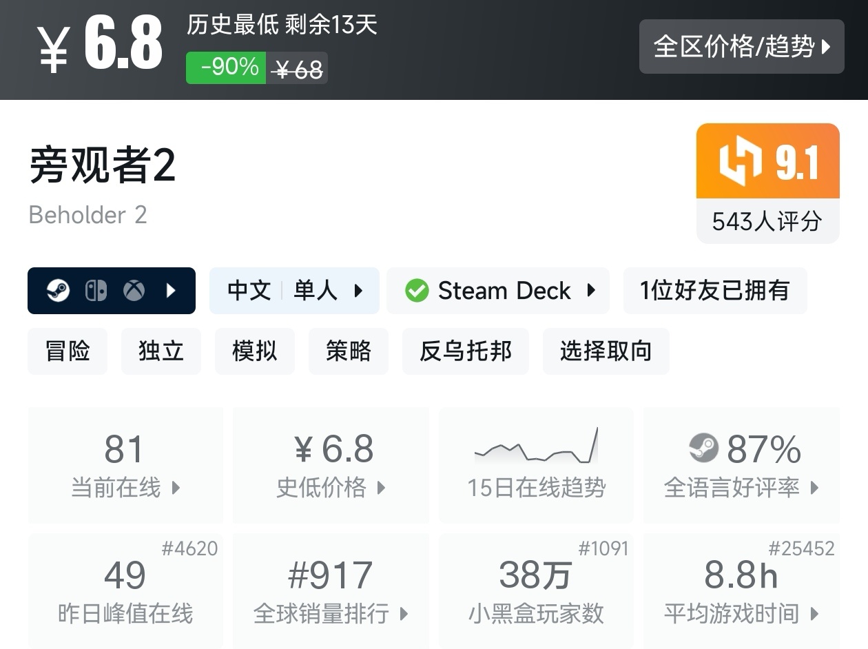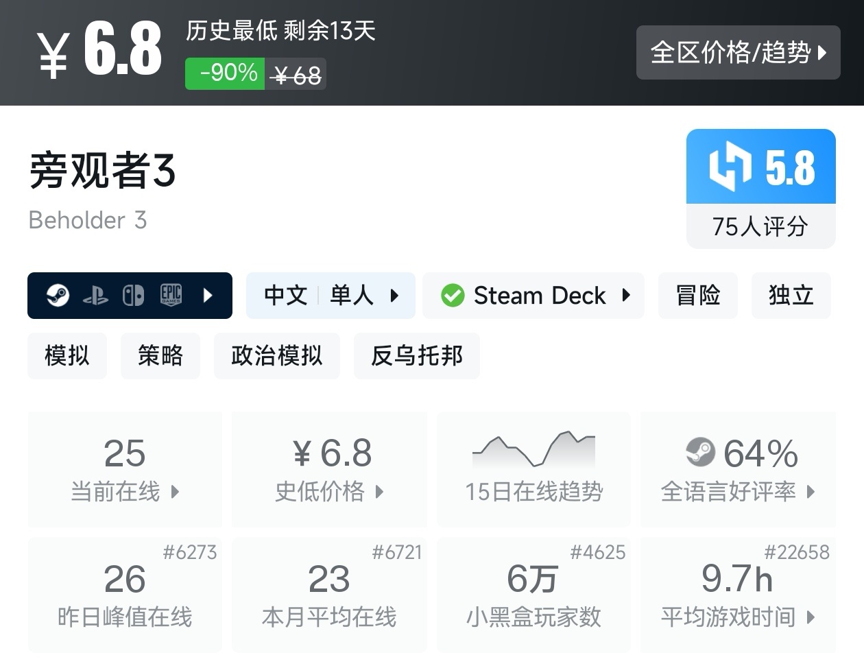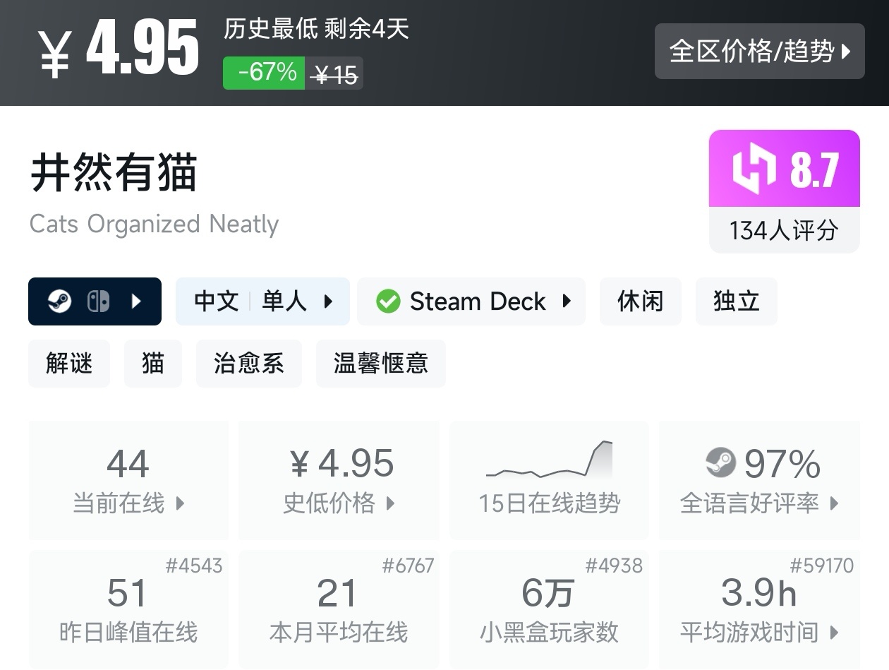 大家好,没错,又是我,你们的老朋友亦然,在最近,Steam这不是动物游戏节了,又有非常多的游戏都迎来了不同程度的折扣,其中就有很多那些在10元以下的游戏,不仅价格美丽,游戏质量还很过硬,我将为各位进行一个汇总,希望我的汇总,能够帮助各位盒友挑选心仪的游戏。
