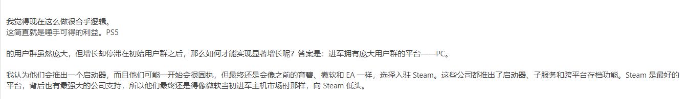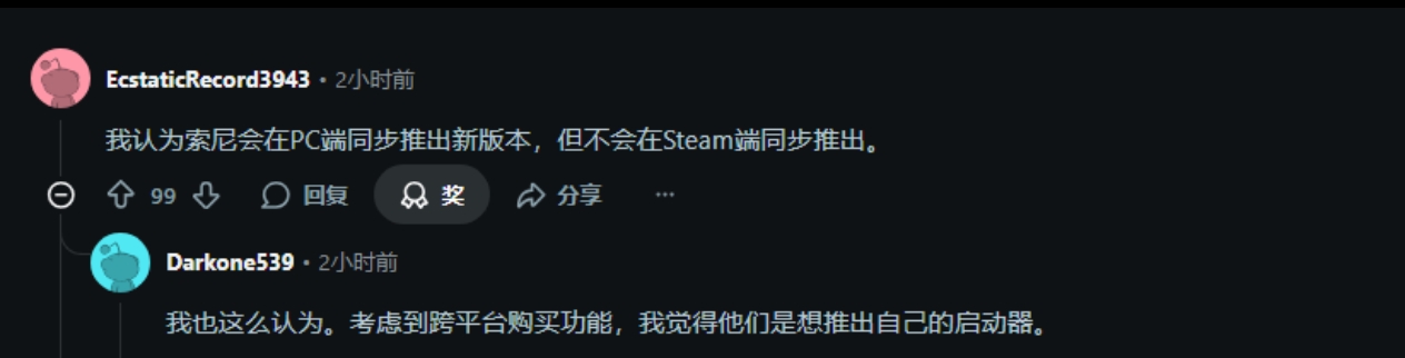 同步登陆策略的背后是索尼对PC游戏市场的重视。有玩家评论指出:“PS5用户基数增长已经放缓”,而PC平台拥有最大的玩家群体,是索尼扩大影响力的必然选择。行业趋势也支持这一判断。微软已率先放弃严格独占策略,其《天外世界2》将同步登陆PC、PS5和Xbox Series平台。索尼此前已确认,旗下服务型游戏将同步登陆PC。