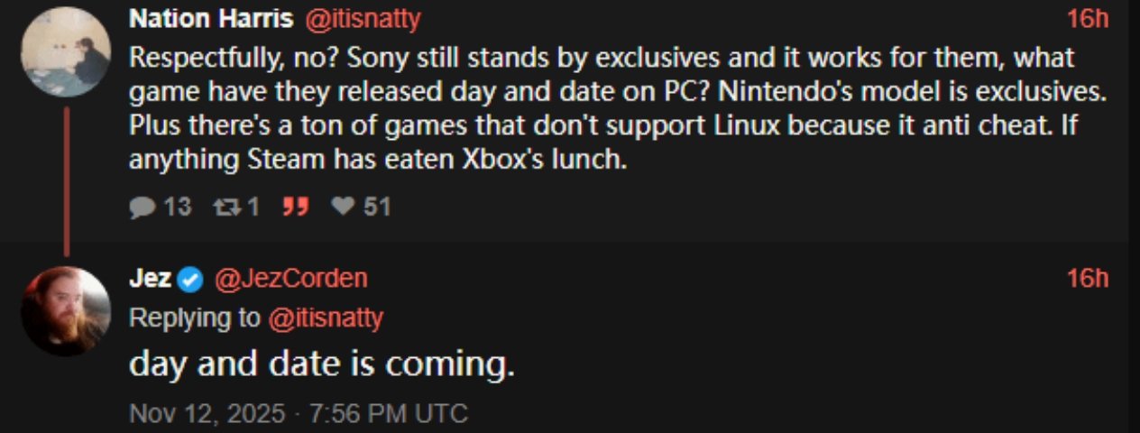 知名爆料人Jez Corden近日公开表示,PlayStation游戏同步登陆PC平台“马上就会到来”。这位Windows Central记者在社交媒体讨论中指出,随着Steam Machine等设备的出现,继续讨论“独占”已显得过时。