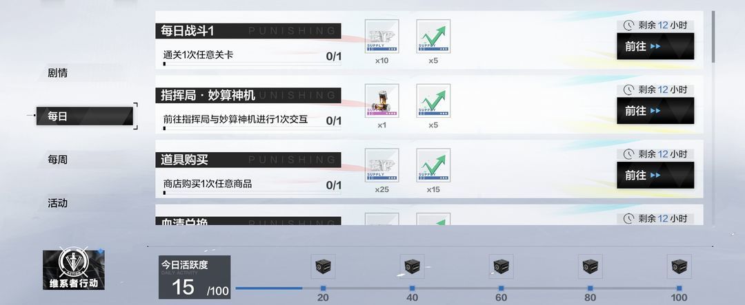 执勤任务:派遣构造体执勤,获取家具币(用于制造家具);