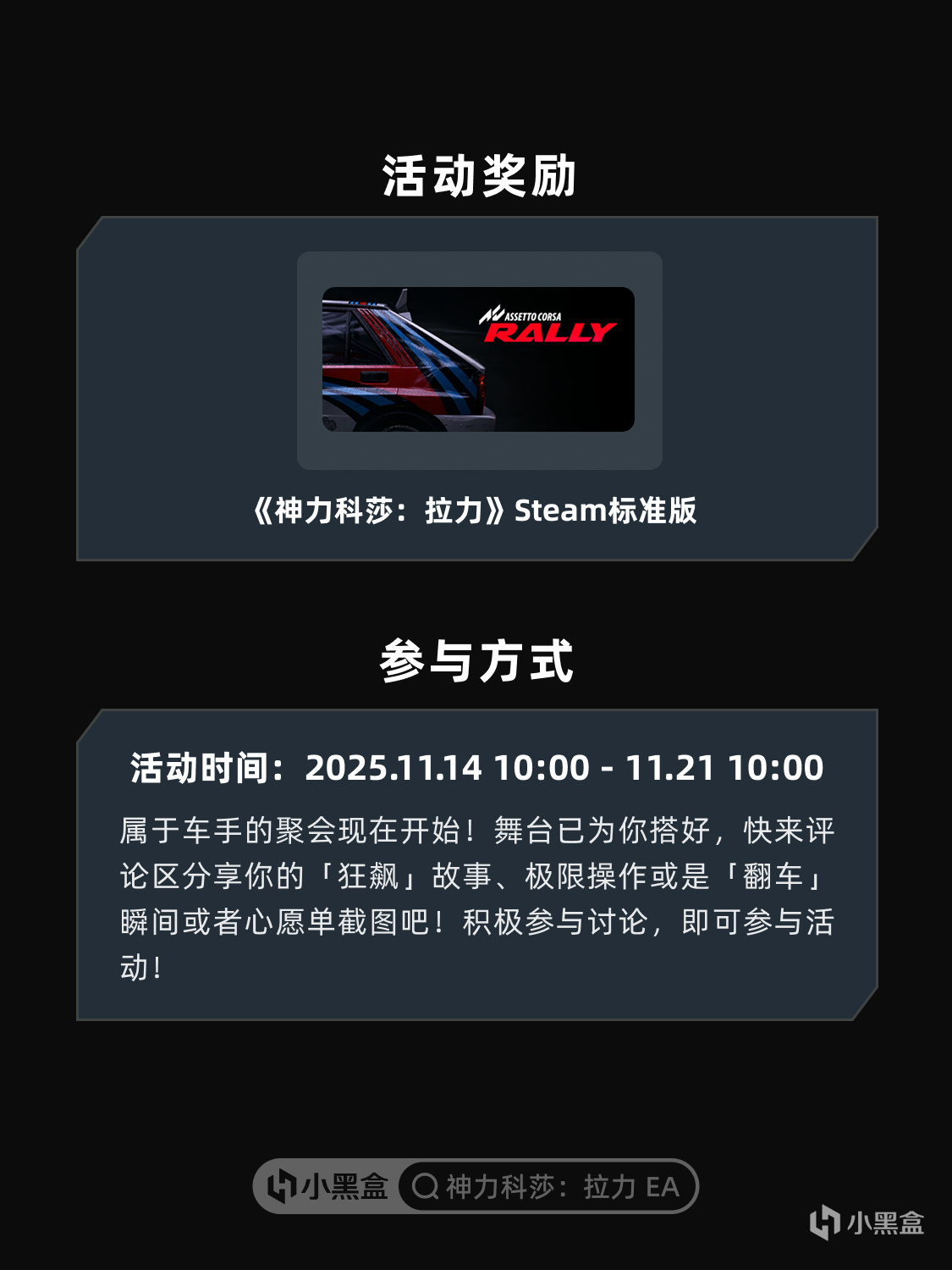 在评论区参与《神力科莎:拉力》的游戏讨论,即可参与活动。