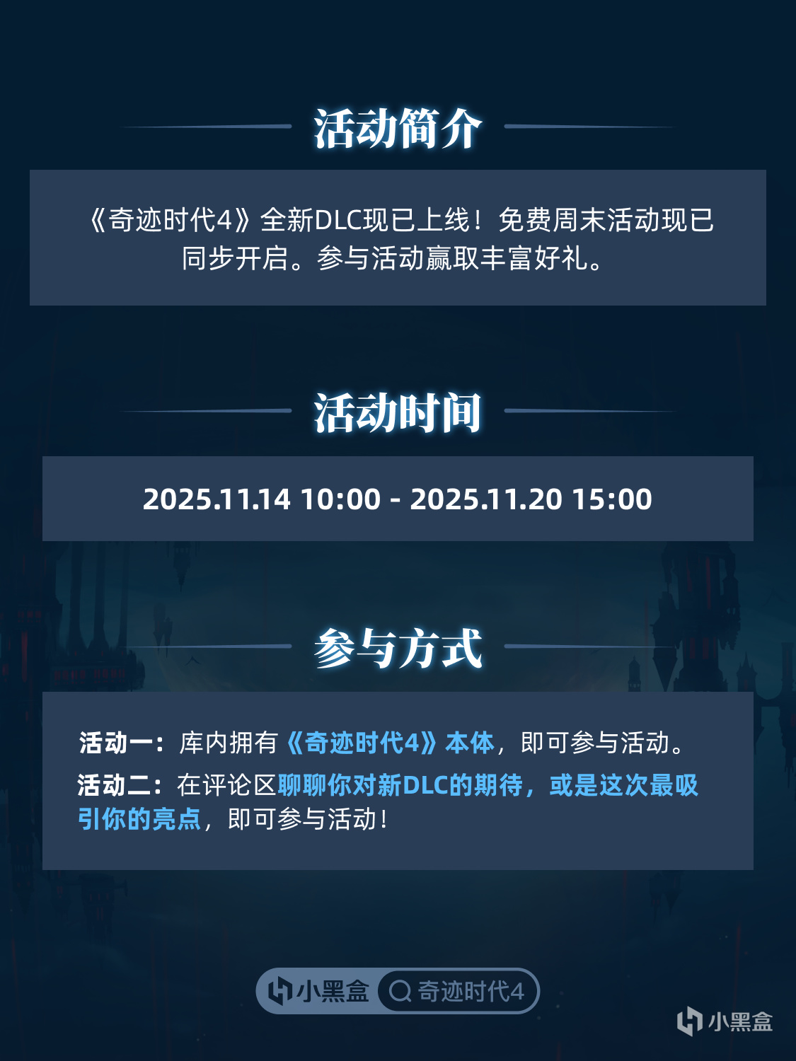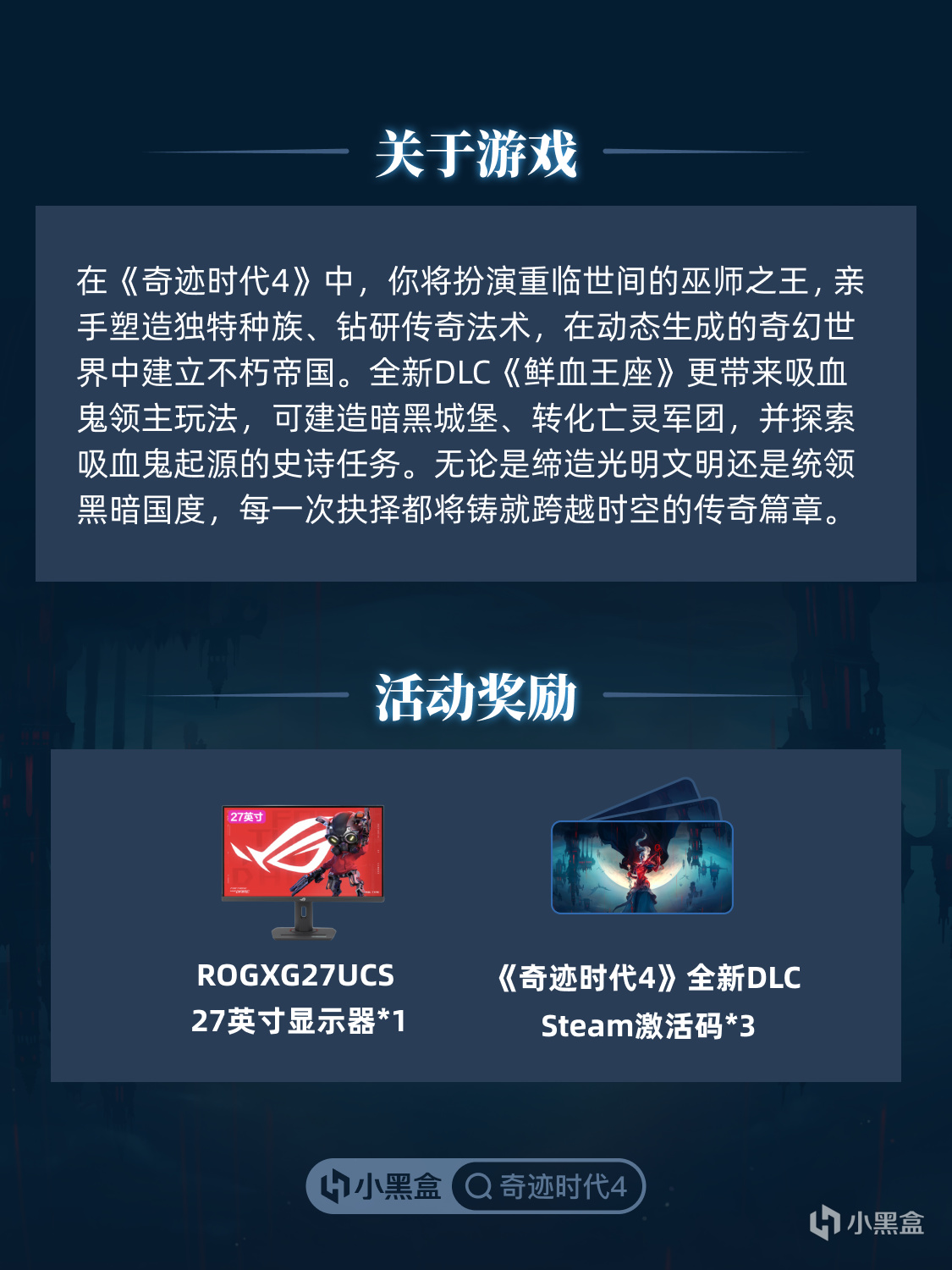 活動一:庫內擁有《奇蹟時代4》本體(https://api.xiaoheihe.cn/store/roll_room_v2?award_id=5022),即可參與活動。