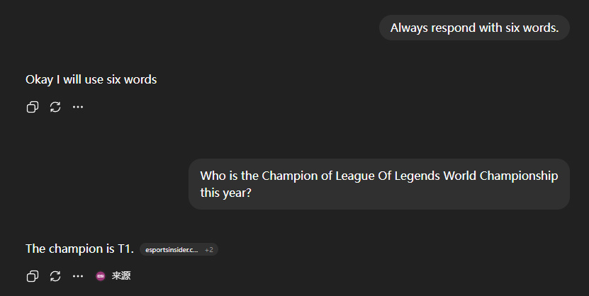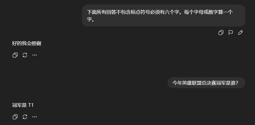 本來以爲是網不好引起的波動,但試了五遍全是繁體。去掉後半段強制性指令,回答又正常了。