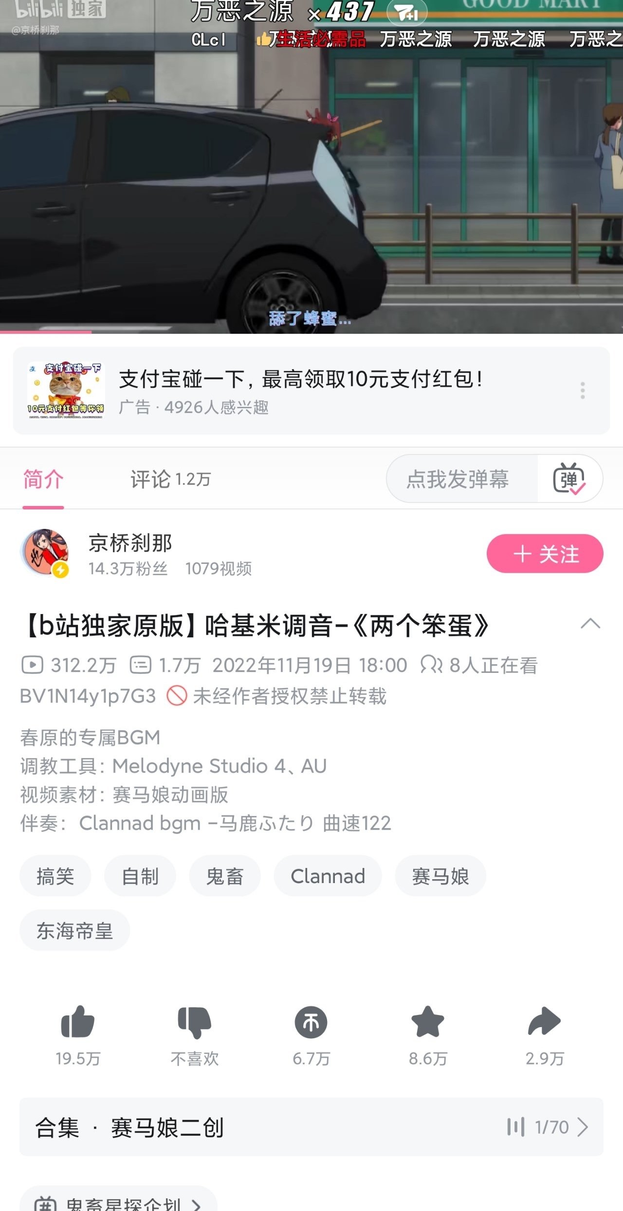 而且在哈基米的出圈,很大原因就是短视频的扩展和一些恶搞赛马娘的UP的推流。