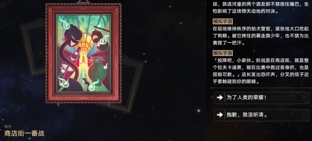 開拓者們可以通過模擬宇宙找到蛛絲馬跡。原商店街一番的詞條,拉夫卡迪奧,已改成了弁才天國,而結合這位角色的名字來看(日本怪誕奇談的鼻祖),新星球弁才天國的設計風格基本可確定,將會是一個“歡愉”的星球。