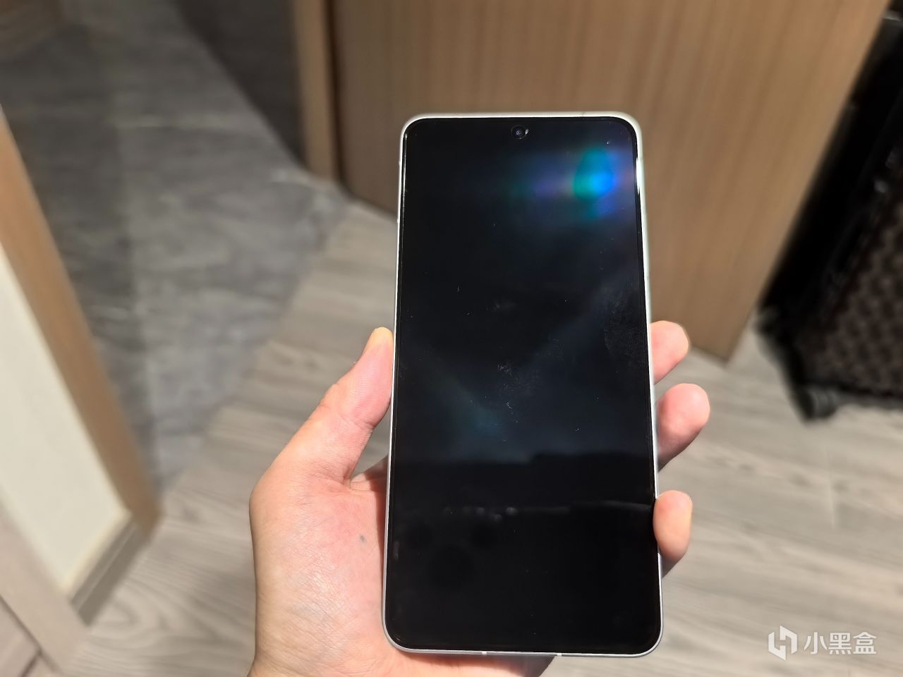 我拿到手的是馳光白版本,並沒有“面對疾風”和“像素方橙”那麼酷炫,但在燈光反射下,整體的光澤和質感還是很舒服的(雖然套上黑殼之後也看不出來了)。
