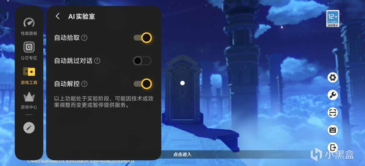 《原神》的運行倒是肉眼可見存在壓力,畫面略顯粗糙,幀率也較之《三角洲行動》明顯降低,大概在60幀上下徘徊(這也很正常就是了,《原神》的運行壓力還是比較大的),但明顯的卡頓比較少,而且AI實驗室裏還提供了項很有用的輔助功能,在大世界探索時足夠減少很多搓玻璃的繁瑣按鍵操作,整體體驗是可以給個好評的。