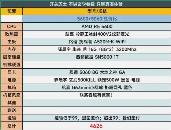 5600可搭配5060、9060XT 16G這類熱門獨顯,組建性價比極高的主流遊戲整機!