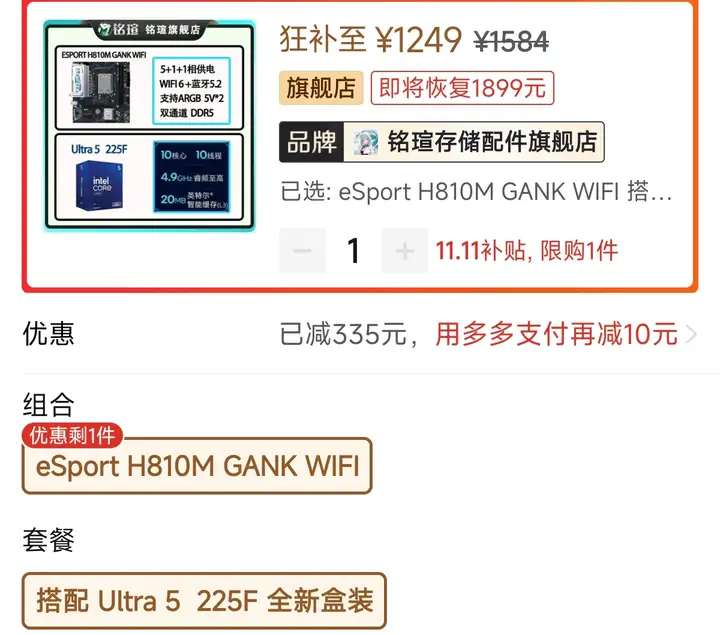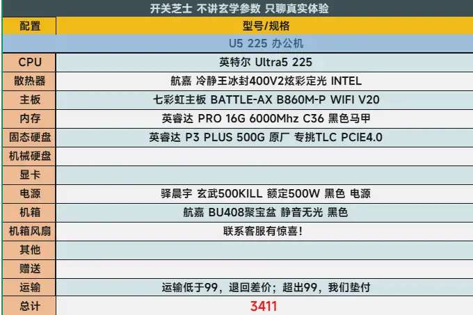 還有U5 225,沒有F後綴,意爲帶核顯。可以不用加裝獨立顯卡就能直接亮機,很適合搭設入門核顯辦公整機: