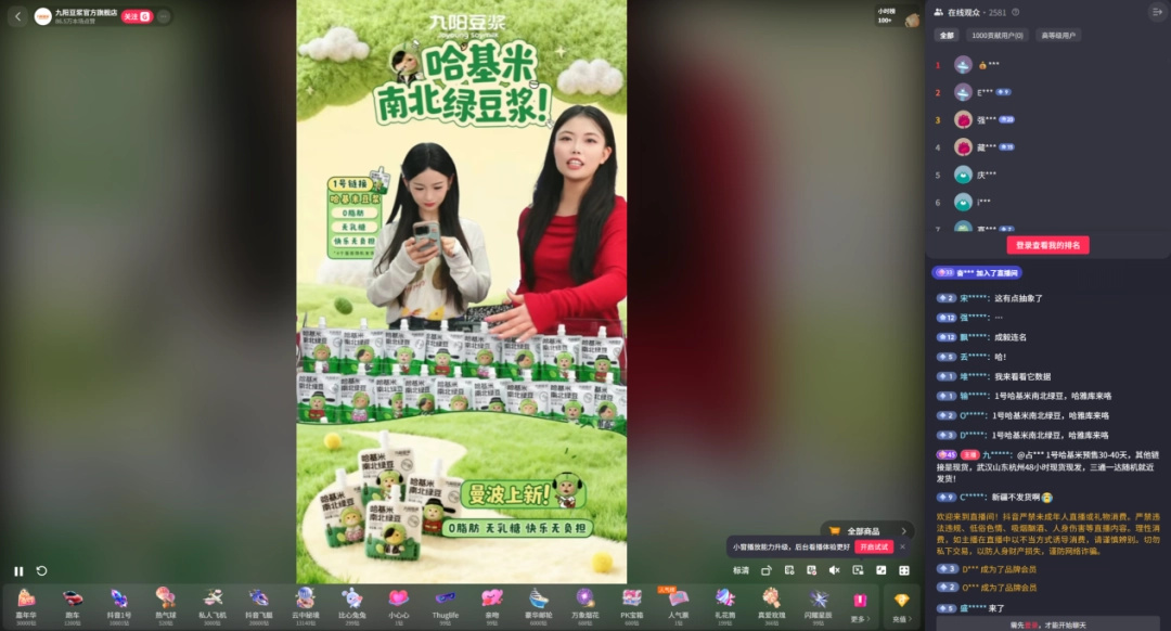 也正因此,九陽哈基米南北綠豆漿的銷量在短短兩天內就超過了八萬份,且隨着網絡上人們的口口相傳和官方在直播間裏開唱哈基米曼波音樂的神人營銷,這個速度還在不斷攀升——目前,第一批現貨已被搶空,預定發貨時間已經推到了11月28日。