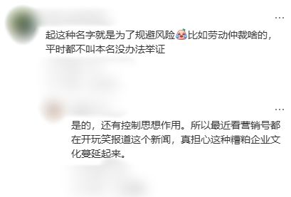 部分消費者覺得稱呼“主人”令人尷尬,“對i人太不友好”。同時,也有網友批評指出:這種“主僕敘事”本質是單向矮化員工人格,通過製造虛假親密感進行情感綁架,起到控制思想的作用。不僅如此,還有網友認爲:起這種名字就是爲了規避風險,以後如果需要勞動仲裁的話沒辦法舉證,是一種企業“糟粕”。