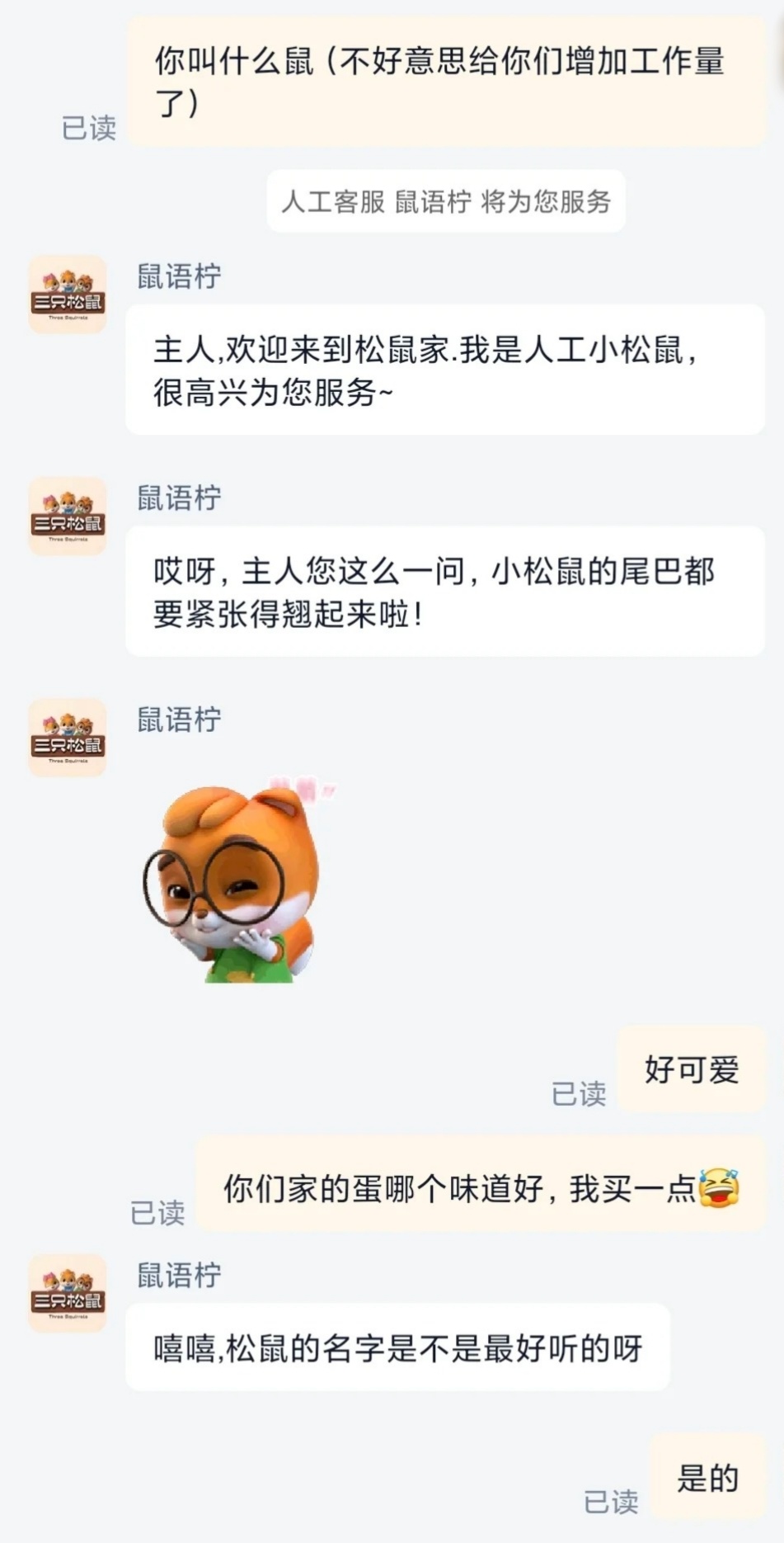 在這場討論中,不少曾經在三隻松鼠購物的消費者也紛紛分享自己的趣事。有人說每次接到“客服鼠”的電話都覺得特別有趣,彷彿自己真的成了一羣小松鼠的主人。