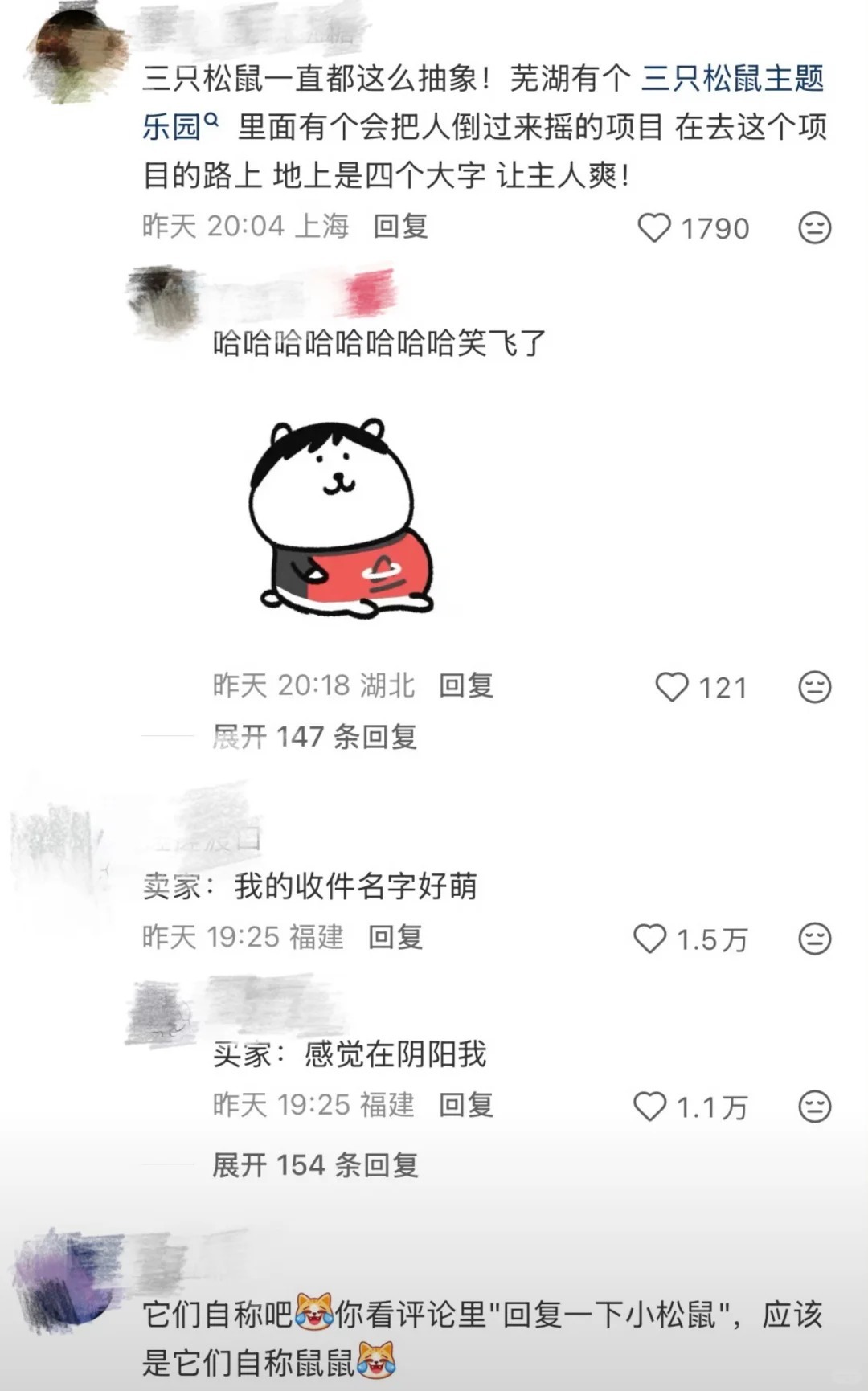 有趣的是,最初發帖消費者的困惑很快被網友們的幽默解讀所化解。松鼠客服和顧客們的對話也被網友們紛紛調侃: