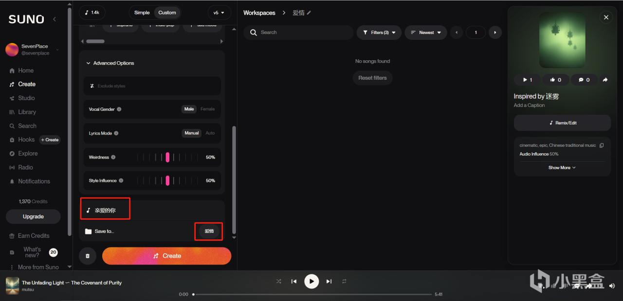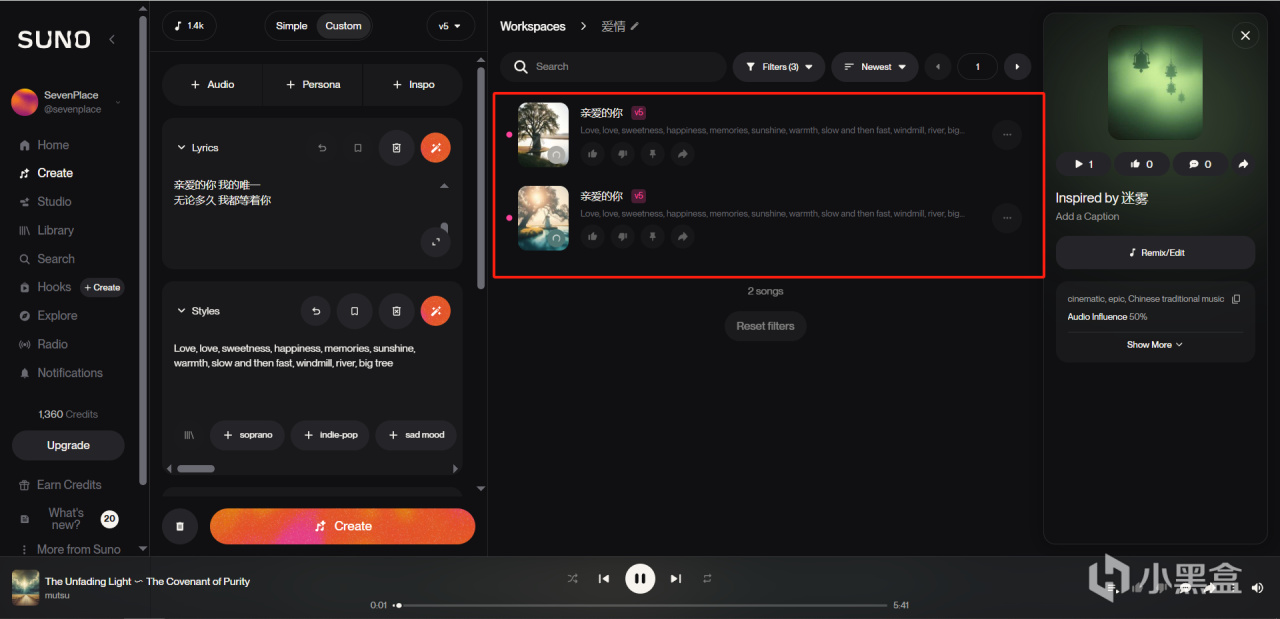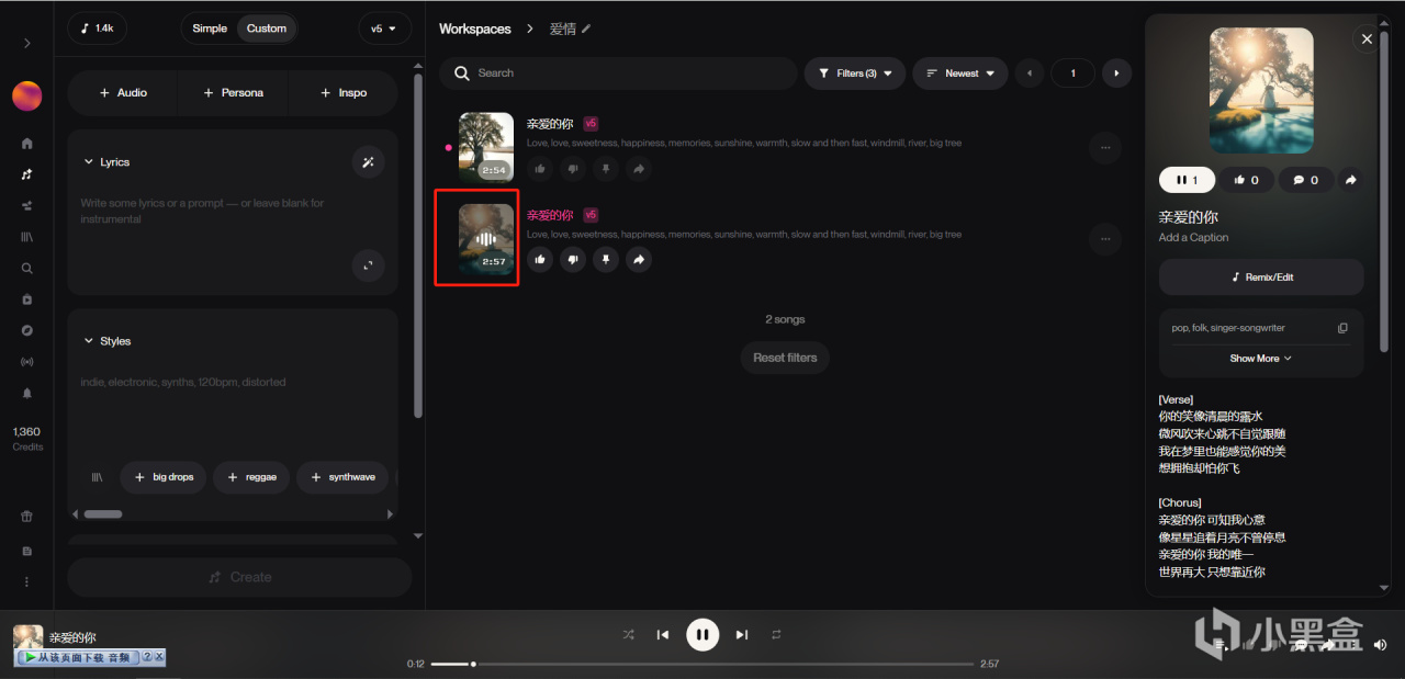 点击图标就可以听你为TA写的“情”歌了,真的还不错,我把两首歌都上传一个B站放后面大家听一听,已经非常难辨真假人声了。这