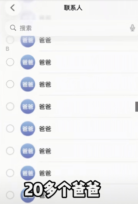 更离谱的是,这些陌生联系人中还包含20多个“爸爸”、30多个“老公”。
