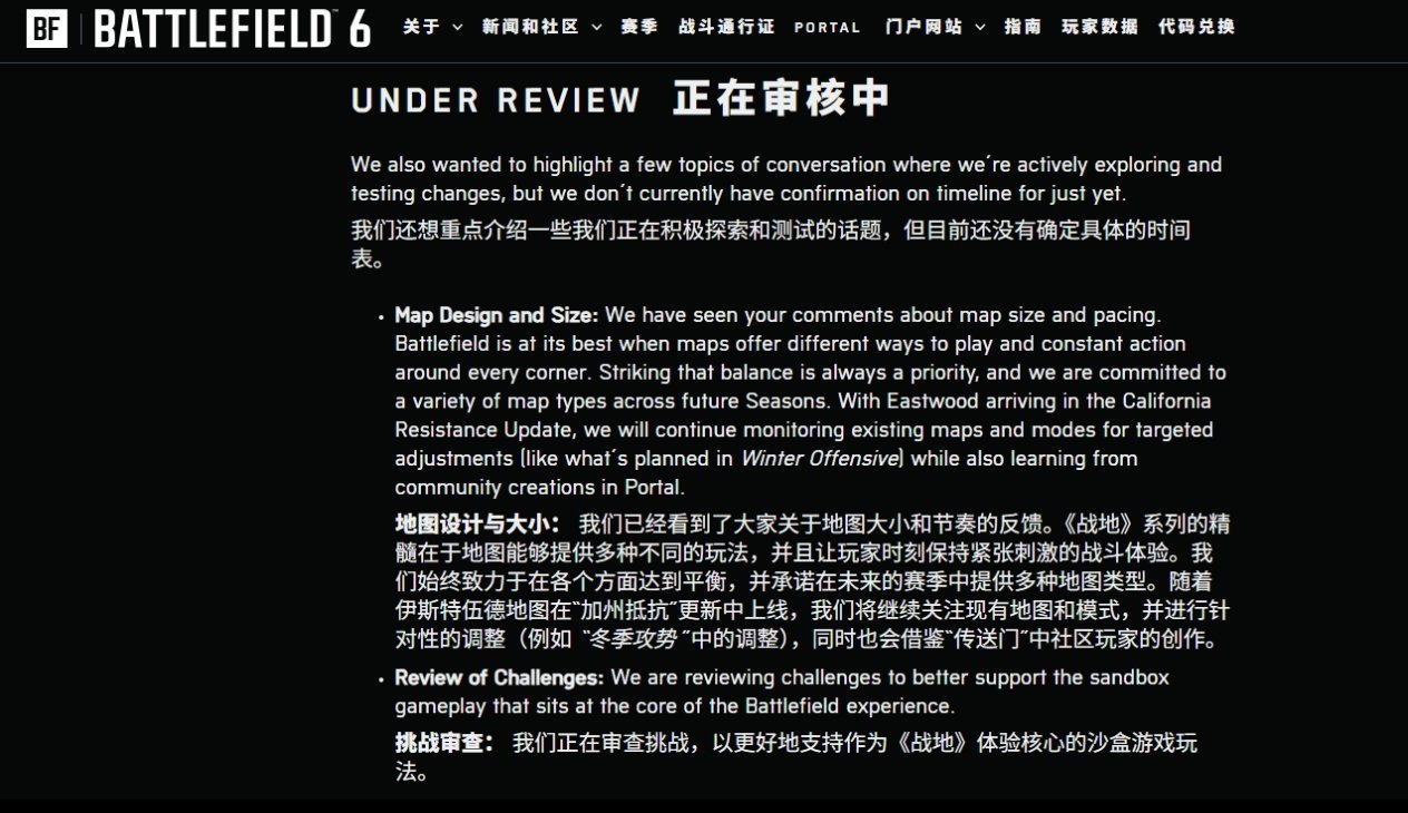 许多玩家批评此举治标不治本,认为问题的核心在于部分地图规模偏小,无法承载《战地》系列标志性的大战场体验。玩家社区指出,测试阶段开放的地图中仅“解放峰”略显开阔,其他地图则过于紧凑。面对争议,开发团队在最新的社区更新中承认正在审查“地图设计规模”议题,并承诺将推出多样化地图类型以满足不同玩家需求。官方表示,他们的设计理念是为不同偏好的玩家提供专属战场:步兵玩家获得优质步战体验,载具玩家有驰骋空间,飞行载具玩家拥有立体空战区域。