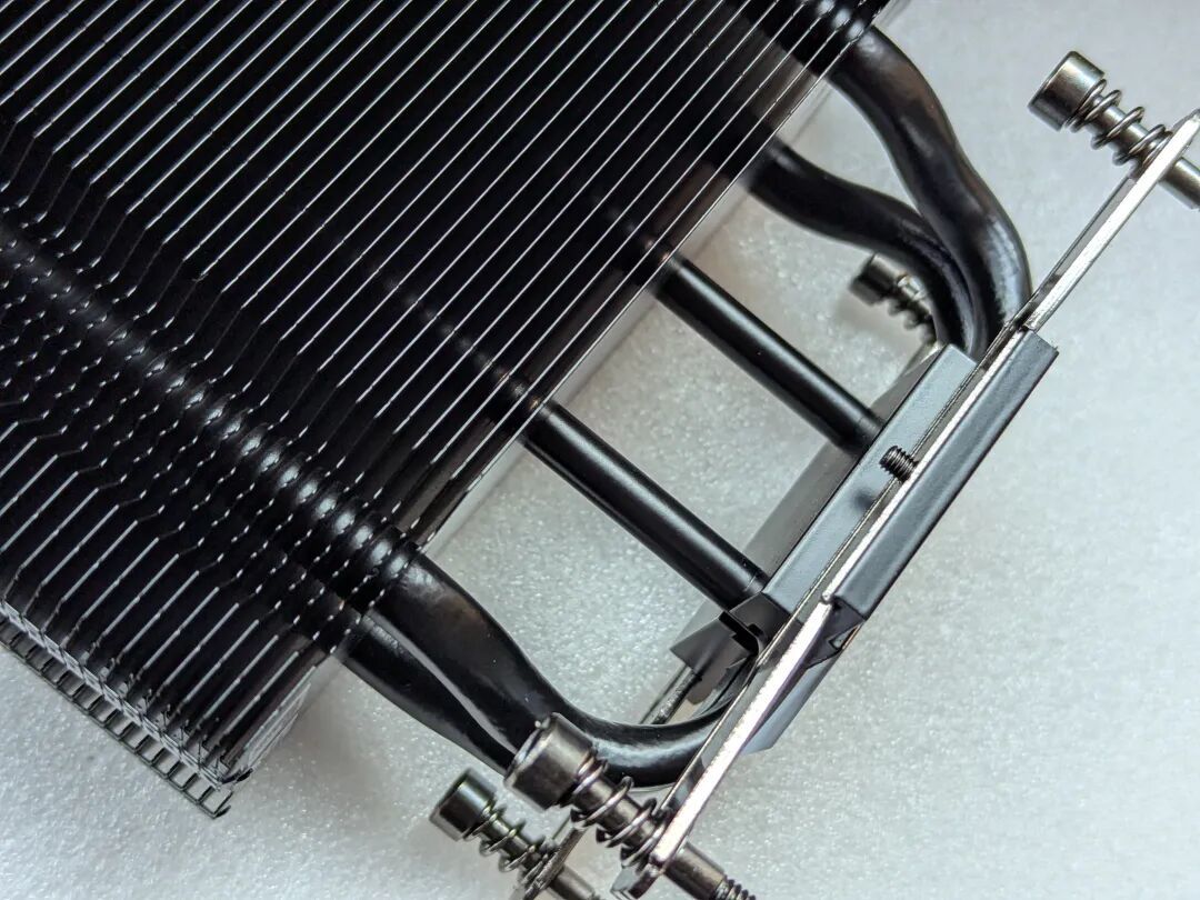 可别因“下压式”而小瞧了它:光从规模上也能看出来,这是目前最强大的下压散热器之一!鳍片面积丝毫不逊于塔式,售价更高达“挑战者”的两倍——传统四热管单塔,远远不是它的对手。