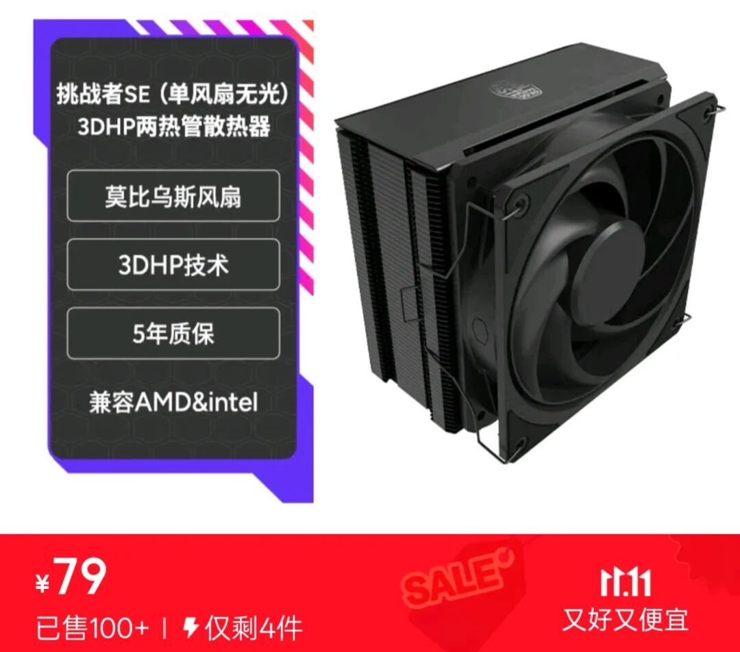 在79元的价位之下,“挑战者SE”的诞生 有如一场难以置信的奇迹:这款入门级的散热塔体,出色地完成了压制主流CPU的性能目标;与此同时,还同时拥有“3DHP”的技术创新和“莫比乌斯”的优秀表现,整体设计有如降维打击。