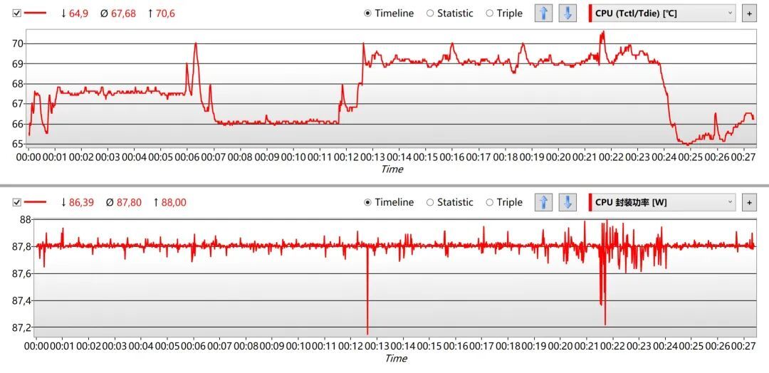 首先进行的是默认设置测试:压制Auto状态下的R5-8600G,“挑战者SE”可谓是驾轻就熟——88W的处理器,轻松控制在67℃上下。