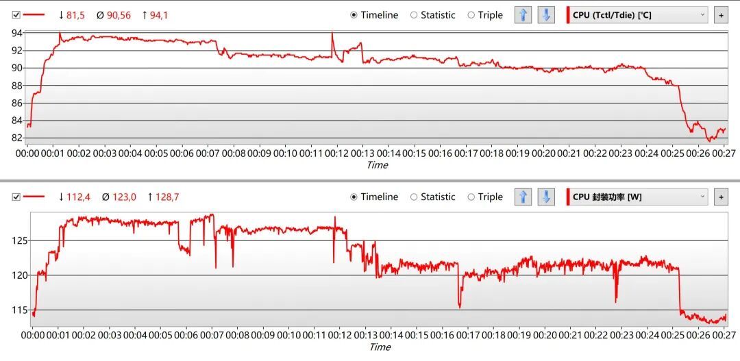 刹那之间,处理器的功耗瞬间攀升,“莫比乌斯”终于展现出了2400RPM完全体的实力。20分钟的测试告一段落,挑战者SE最终取得了功耗123W、平均温度90.6℃的成绩。