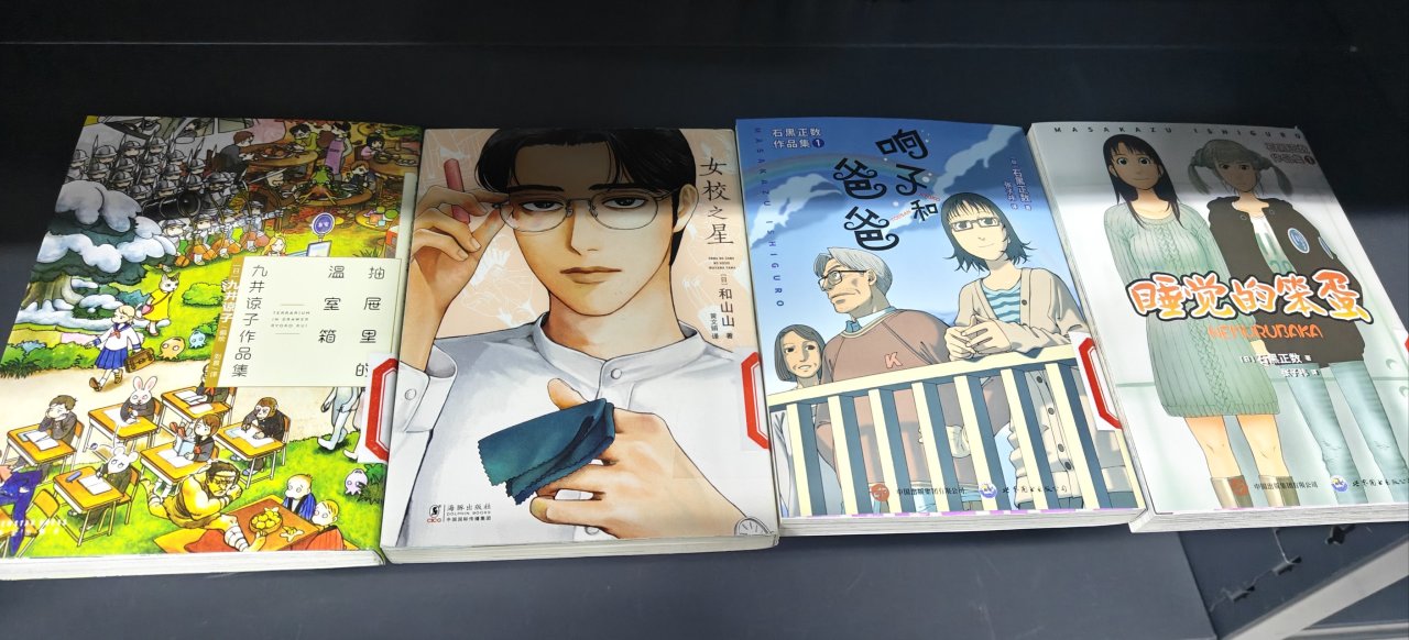 並且除了大熱門之外,還有一些不那麼熱門的精品,我這次來就是爲了借今年剛引進的石黑正數短篇集,雖然很久以前在動漫之家看過,但現在動漫之家都沒了,緬懷一波(希望能有引進《即使如此小鎮依然轉動》和《天國大魔境》的一天)