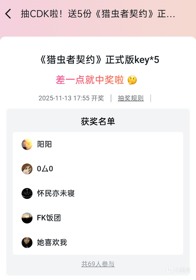 第一期抽獎結束~恭喜這5位盒友,馬上還會有新的抽獎,敬請期待!
