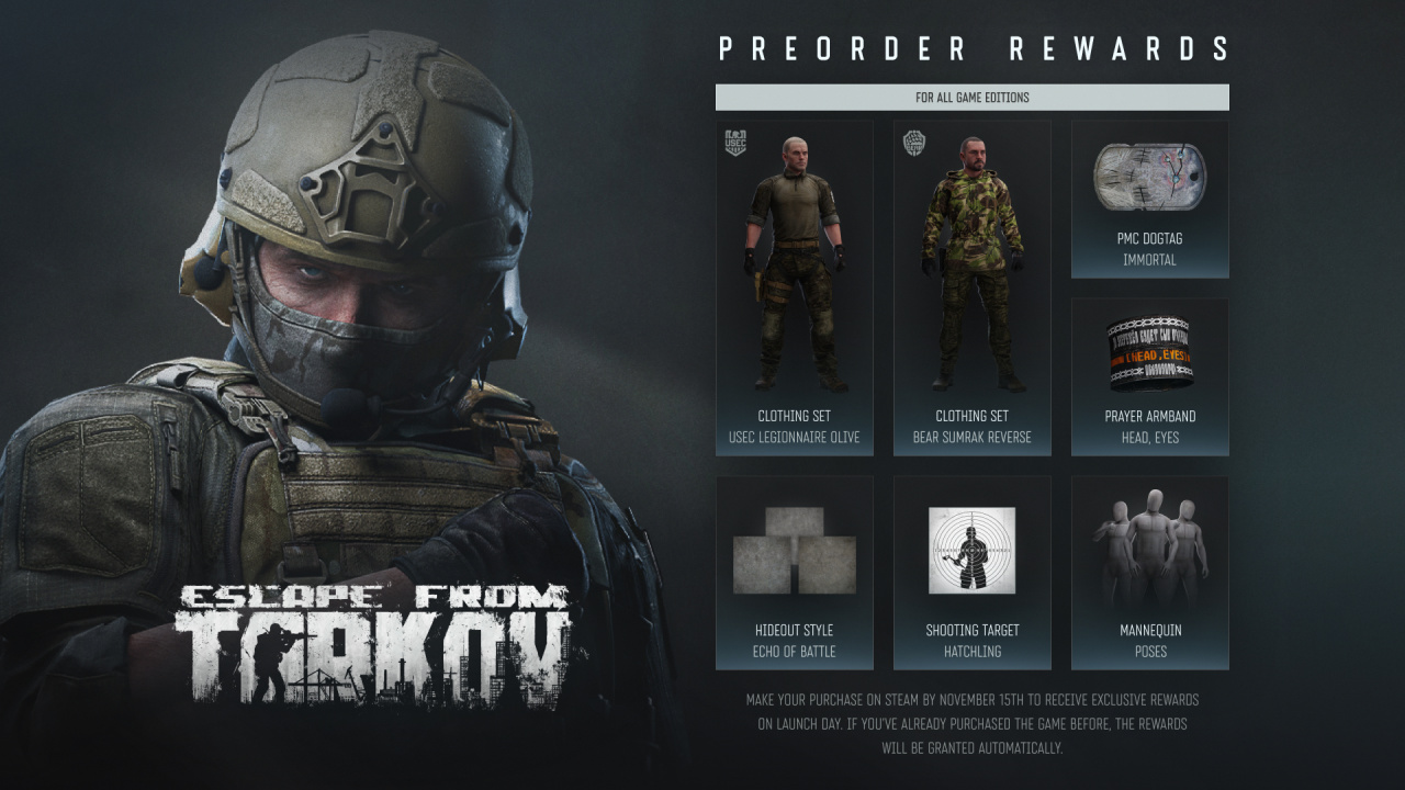 《逃离塔科夫》1.0版本将于今天上线,Steam版七五折预购特惠也已开启,售价¥213.75/352.5/476.25,PVE模式¥126.75,折扣将会持续至游戏正式发售。
