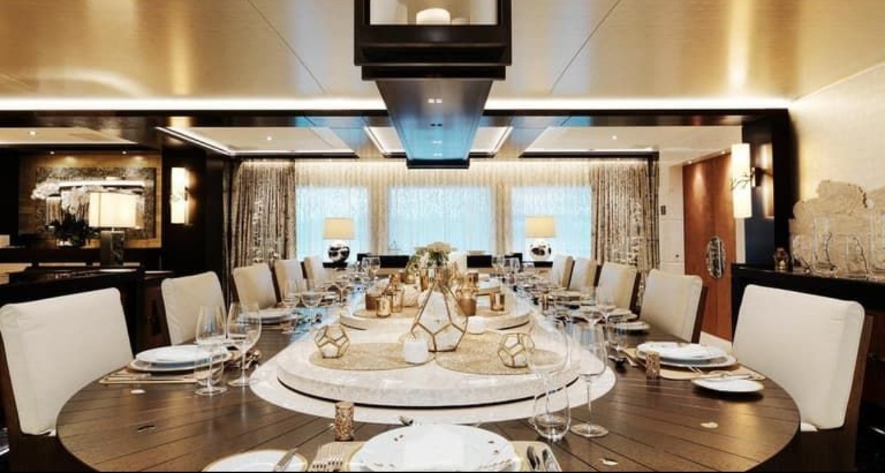 纽维尔不仅深度参与游艇设计,更在年初直接收购了Oceanco船厂,确保这艘游艇从立项起就突破传统造船流程。“利维坦”最引人注目的是其电缆系统——整船布线总长逾280英里(约450公里),相当于洛杉矶到拉斯维加斯的距离。这些电缆为从娱乐系统、卫星通信到医疗舱的各类设施供电,更支撑着一个配备15台游戏电脑的专业电竞房。船上设施极致奢华,主人套房配备铺装镶木地板的浴室与白蜡木定制橱柜,还拥有两座健身房、电影院、专业酒窖以及近250平方米的海滩俱乐部,俱乐部内含酒吧、水疗中心、披萨窑和潜水跳台。