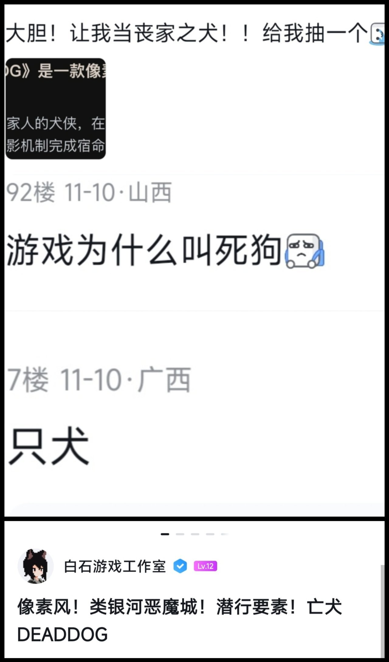 最近近100個盒友吐槽了我們的遊戲名字。兄弟萌,這遊戲標題是人類的文字嗎?甚至我們在之後還抽象的回應了評論區支持聲音最高的遊戲標題只狗。