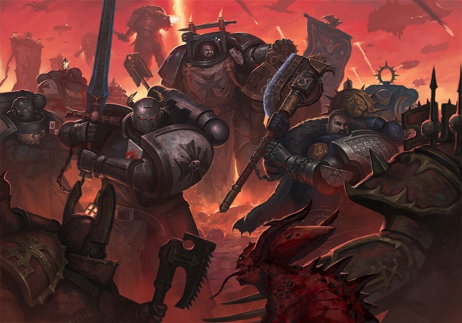 在天际,帝国海军的舰队牢牢压制着兽人;而当通往内巢的大门洞开之时,由尊贵的希尔德布兰德战斗兄弟率领的黑色圣堂,便从门内怒涛般突击而出。