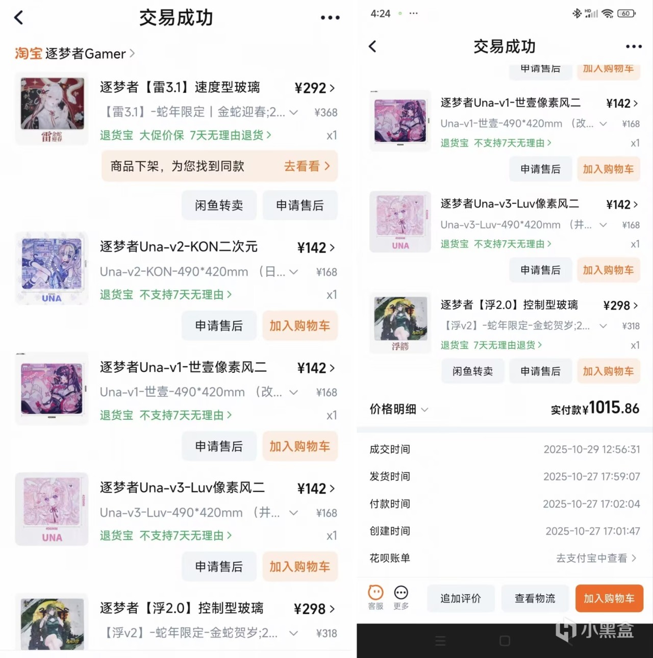 我就以我最近双11在逐梦者家入手的雷以及浮的最新款为例