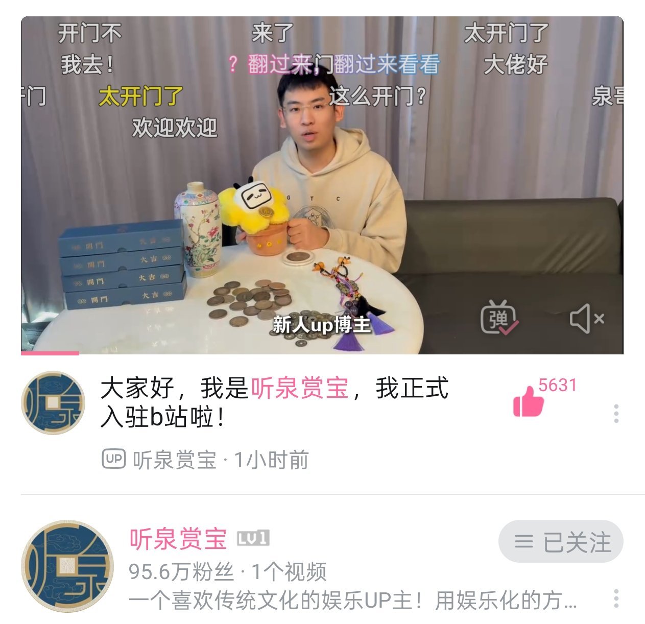 知名网红“听泉赏宝”(本名丁祥栩)近日正式入驻B站,引发全网关注。这位坐拥超3000万粉丝的鉴宝达人,凭借幽默的直播风格和“神梗”频出的互动,曾创下单月涨粉近千万的纪录。其标志性的《春庭雪》BGM和“沉淀”“开门”等暗语,已成为粉丝津津乐道的符号。