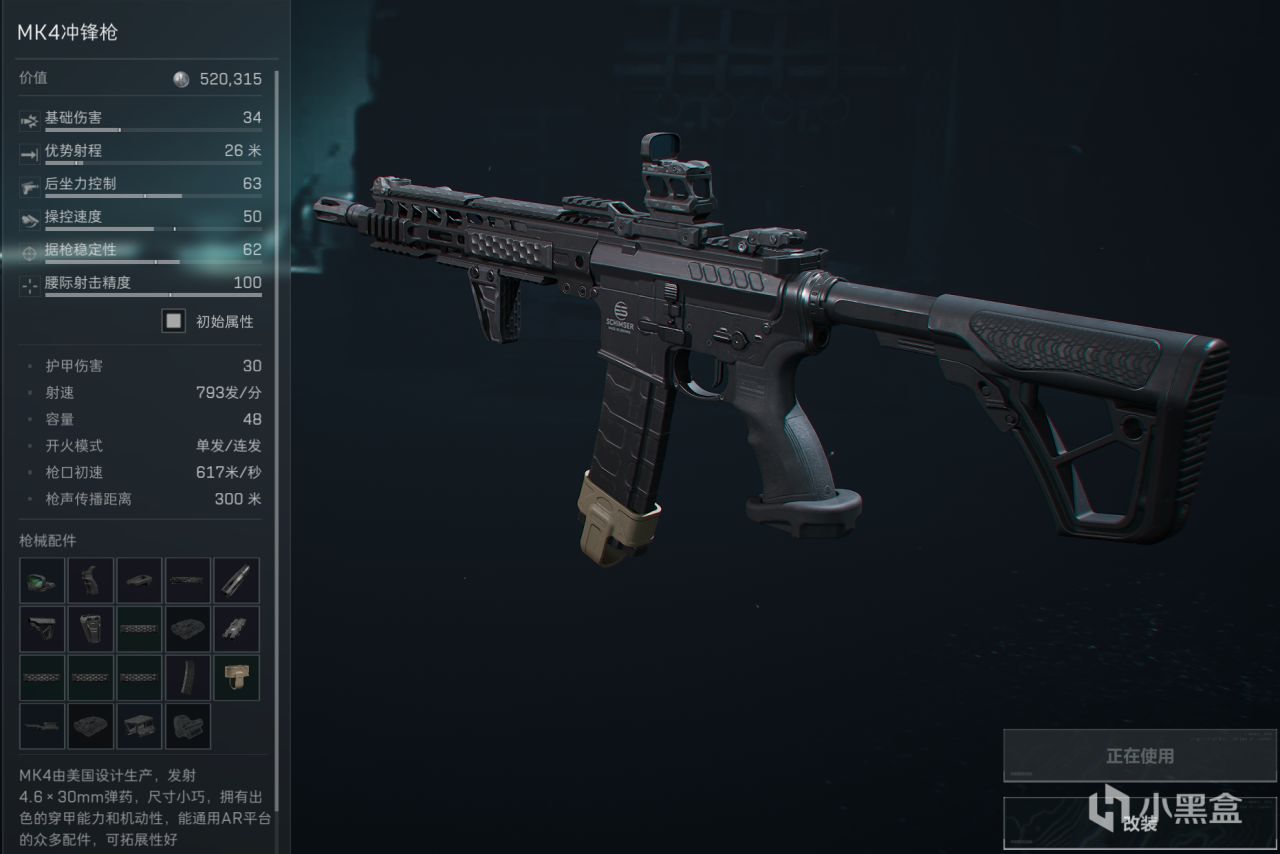 MK47数值面板看起来确实平平无奇,但是秒伤能力是要比MP7还好,并且手感相当好,后坐极小,100m内稳压,装上枪管后优势射程提升至25、26m中近距离完全可以当步枪使,三连发不习惯的也可以装枪管,不过现在全自动枪管有点贵了。总的来说这是一把后坐很小、秒伤很高、射程很远的冲锋枪。